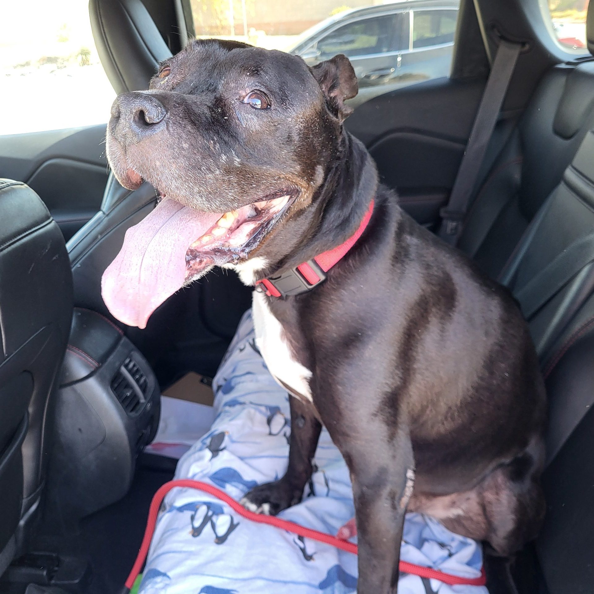 He’s not reactive to other dogs and stays neutral on walks. Midnight warmed up quickly to his foster once he knew he was safe, and now enjoys gentle pets, belly rubs, sunbathing, and soft, cozy beds. He sleeps through the night, loves being near his person, and is an ideal match for someone who works from home, a retiree who enjoys daily walks, or anyone looking for a peaceful, loving companion.