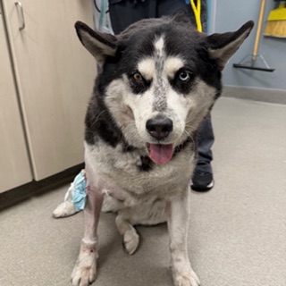 This sweet girl was reportedly hit by a car and has a very severe wound her right front leg, some broken ribs, possible head and mouth trauma. She's also overweight. She's in need of serious wound care under general anesthesia to fully assess her wound and determine the best bext steps for her. She will need to