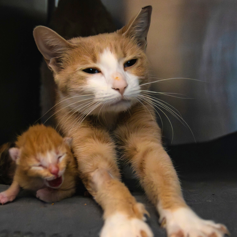 Nursing moms are the hardest for us to find placement for, but we always recommend new kitten fosters start with nursing moms.