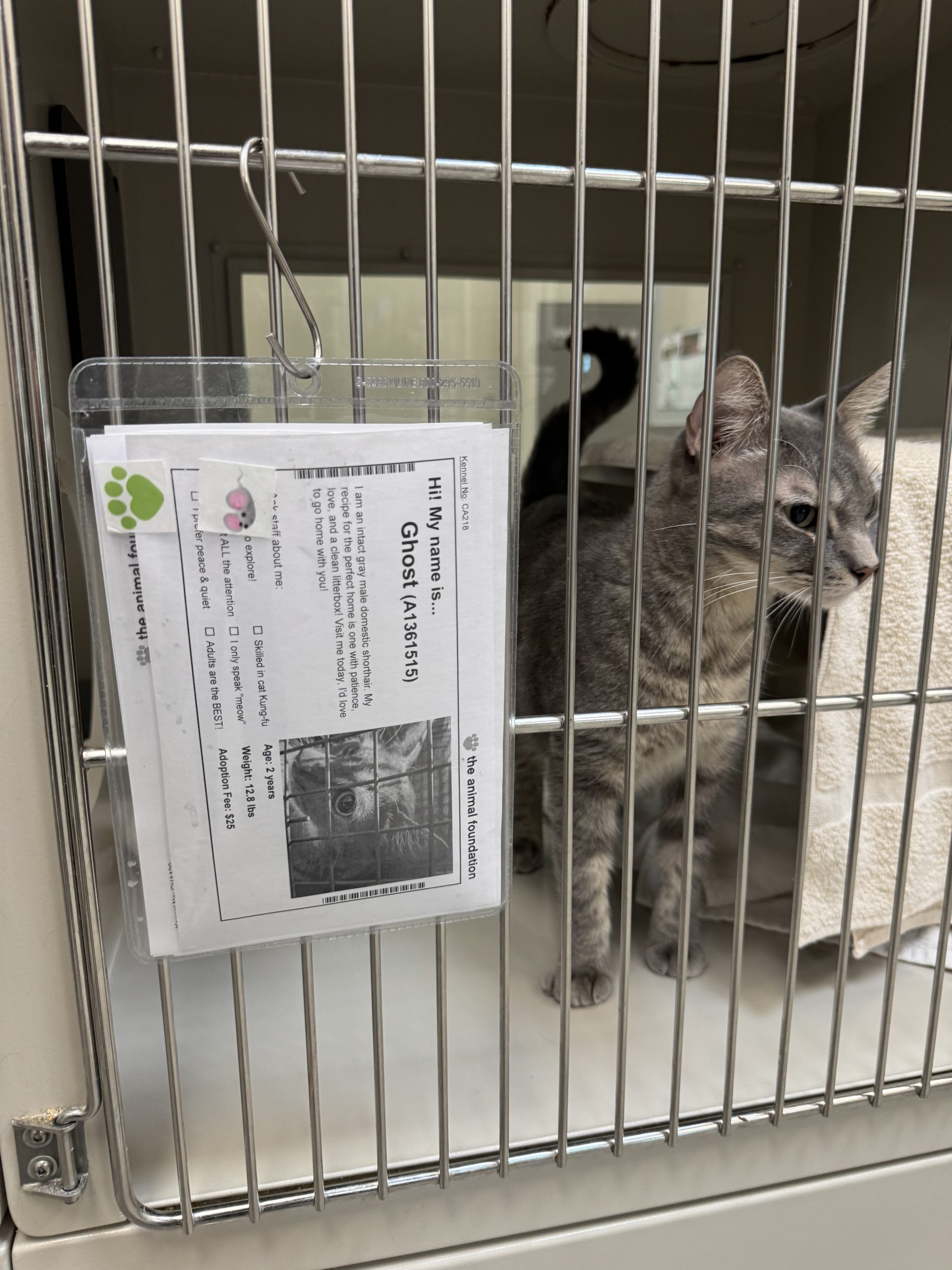 My name is Yoseline, and last summer, my partner Trevor and I decided to adopt a cat. We originally went in hoping to meet Georgie, but fate had other plans for us. A kind staff member quietly pulled me aside and suggested we meet Ghost instead—a gentle gray tabby who, she said, would be the perfect companion for me. At that time, I was struggling with losing my job and battling intense episodes of depression and anxiety. Her recommendation felt like a sign from the universe.