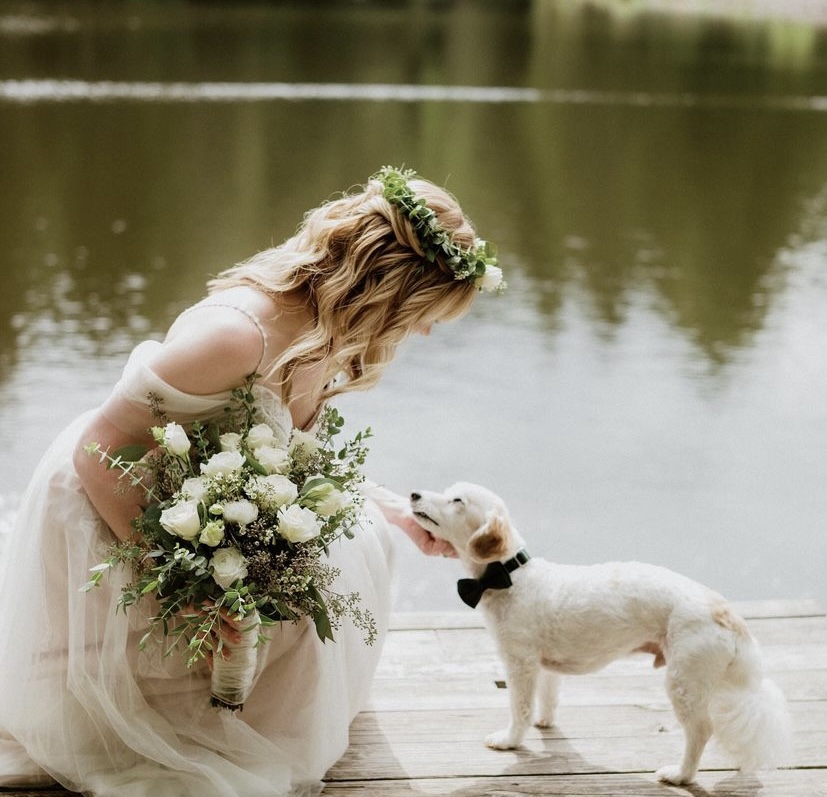 “We had a small, five-minute ceremony with just our immediate families before the big reception, and Rudy was our escort as we walked from the lake house to the ceremony location,” Erin recalls.