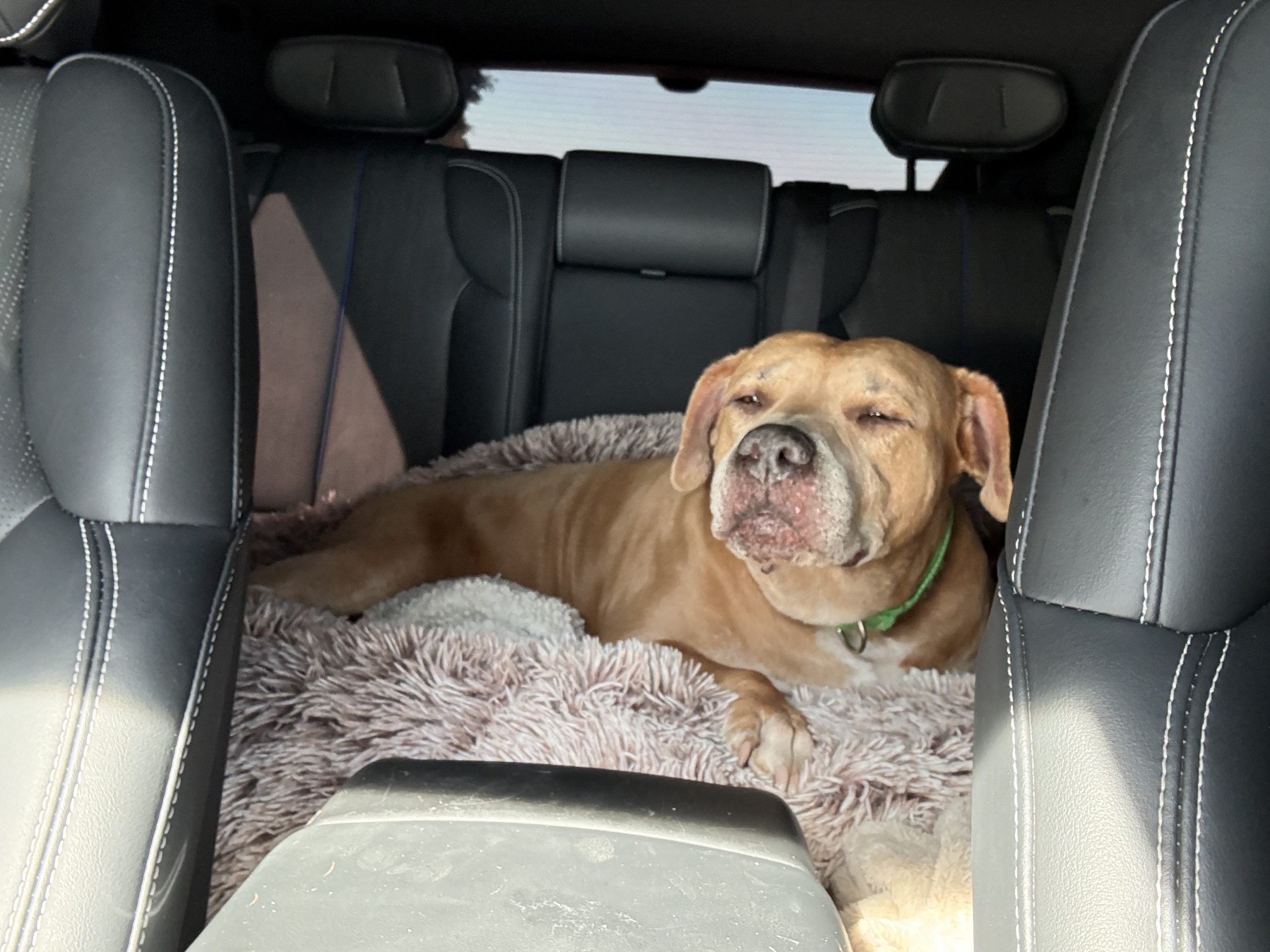 I adopted Terk, *Bullet* from the Animal Foundation in 2022. He was 8 years old then. His ears were covered in scabs from flies landing on them over time. He was skinny, already had arthritis in his back legs and all of his teeth are practically shaved down. Even one of his bigger teeth in the front is broken in half. I was told he was an outside dog, lived on a chain and chewed on the chain often. That’s why his teeth are so bad. He came with bad breath and a somewhat grey face but when I saw him, I knew he was mine.