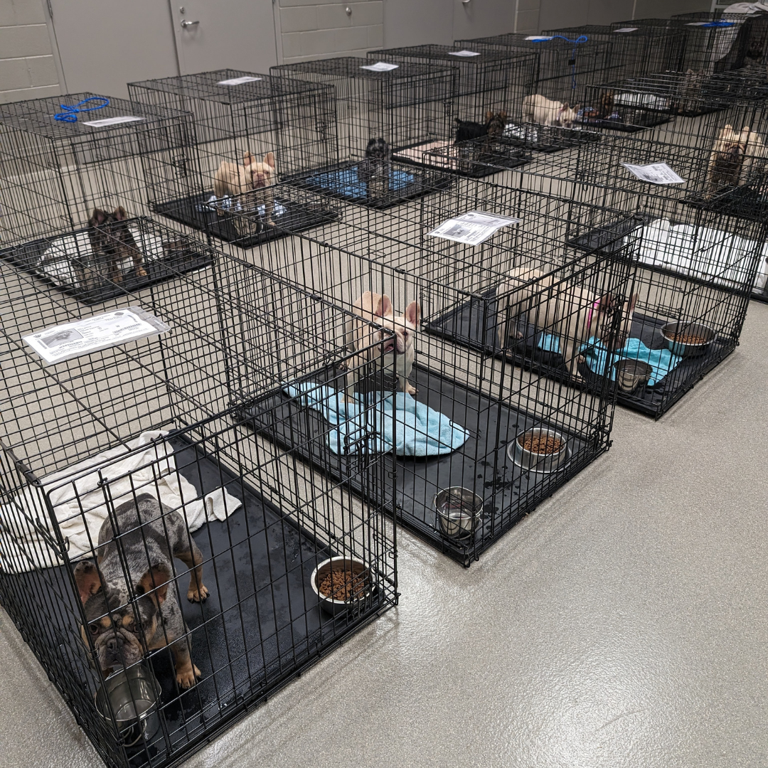 Our kennels are full, and we are now using emergency pop-up kennels to temporarily house dogs in our community center.